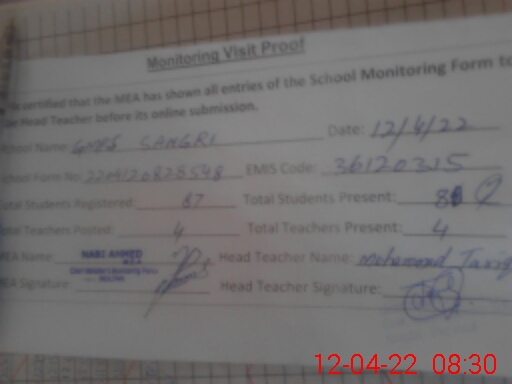 | Attendance Register | Head Teacher | MEA with School | Visit Proof |