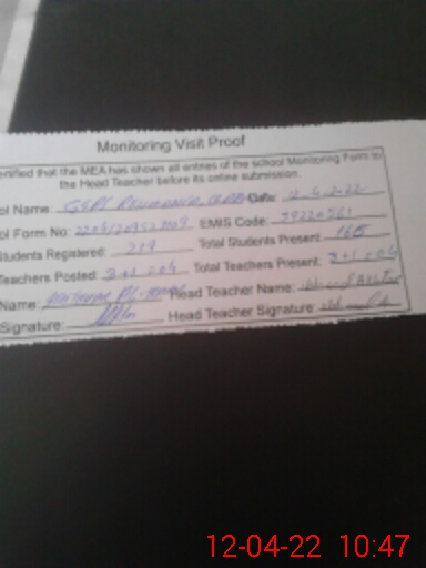 | EMIS Code: 39220561 | Name of School: GGPS REHMANIA QABOOLA | |||