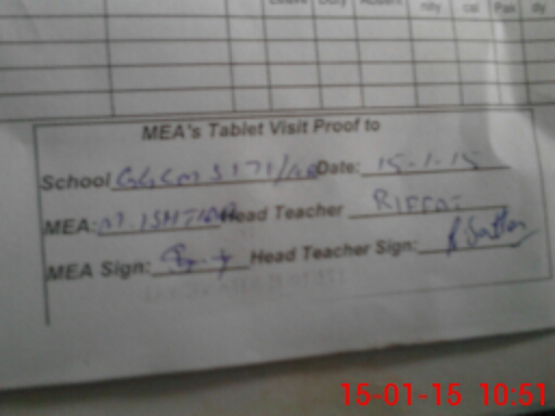 | Attendance Register | Head Teacher | MEA with School | Visit Proof |