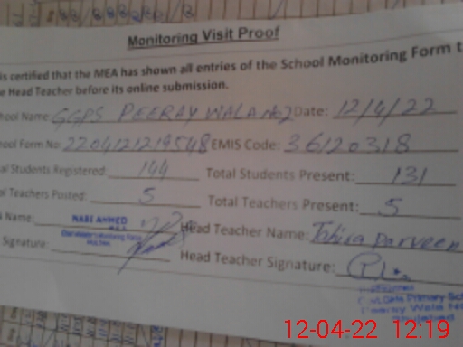 | EMIS Code: 36120318 | Name of School: GGPS PEERAY WALA NO.2 | |||