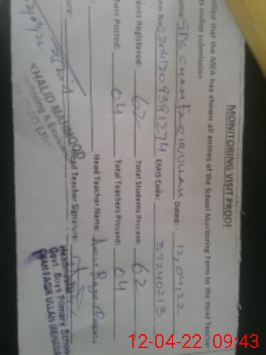 | EMIS Code: 37240213 | Name of School: GPS CHAH FAQIR ULLAHA | |||