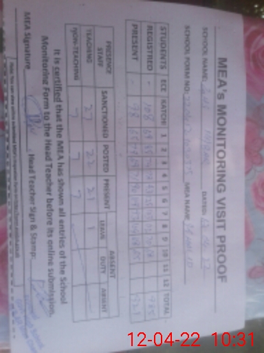 | Attendance Register | Head Teacher | MEA with School | Visit Proof |