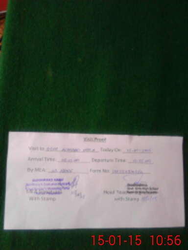 | School Visited by School Health & Nutrition Supervisor (No. of Visits) | 1 | Name1: | RAFIA TABASSUM | Name2: | NIL |