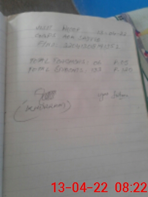 | Monitoring Date: 13-04-2022 | Start Time: 13-04-2022 07:47 AM | End Time: 13-04-2022 08:23 AM | Name of MEA: Kh**** Ri**** | |