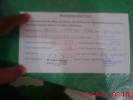 | Attendance Register | Head Teacher | MEA with School | Visit Proof |