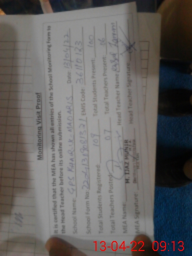 | Monitoring Date: 13-04-2022 | Start Time: 13-04-2022 08:34 AM | End Time: 13-04-2022 09:16 AM | Name of MEA: MU**** IJ**** MU**** | |