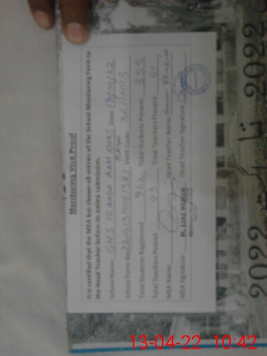 | Certified that this School was Inspected by the Undersigned MEA/DMO Today and the Information Stated Above is as Per Record. | |||||