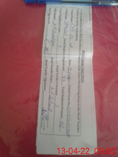 | Name: MU**** SO**** AK**** Designation: (School Headmaster's/Headmistress's) PTC/JV Phone/Cell Number: 03**** |