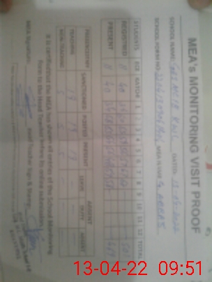 | Attendance Register | Head Teacher | MEA with School | Visit Proof |