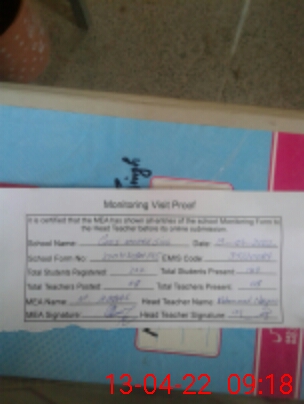 | Attendance Register | Head Teacher | MEA with School | Visit Proof |