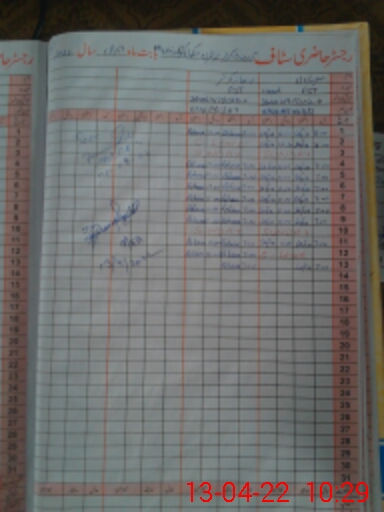 | CNIC | Full Name | Designation | R/C | Absence During Last Calender Month |