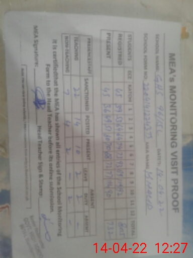 | Monitoring Date: 14-04-2022 | Start Time: 14-04-2022 11:12 AM | End Time: 14-04-2022 12:30 PM | Name of MEA: Kh**** Me**** | |
