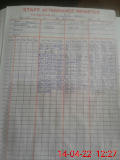 | CNIC | Full Name | Designation | R/C | Absence During Last Calender Month |