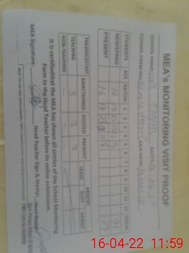 | Monitoring Date: 16-04-2022 | Start Time: 16-04-2022 10:55 AM | End Time: 16-04-2022 12:02 PM | Name of MEA: Kh**** Me**** | |
