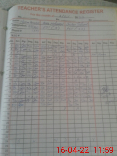 | CNIC | Full Name | Designation | R/C | Absence During Last Calender Month |