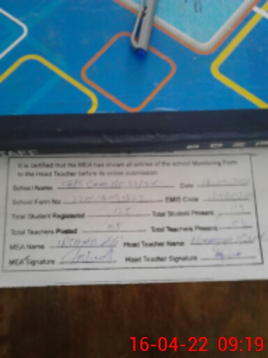 | Attendance Register | Head Teacher | MEA with School | Visit Proof |