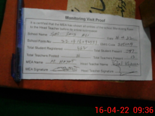 | Certified that this School was Inspected by the Undersigned MEA/DMO Today and the Information Stated Above is as Per Record. | |||||