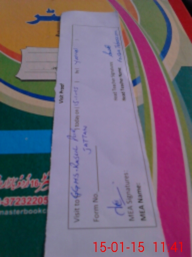 | Monitoring Date: 15-01-2015 | Start Time: 15-01-2015 11:35 AM | End Time: 15-01-2015 11:41 AM | Name of MEA: YO**** AL**** SH**** | |