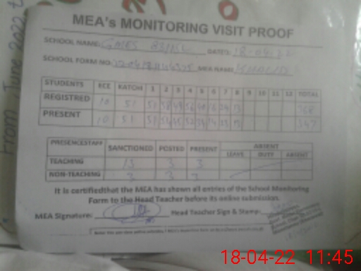 | Attendance Register | Head Teacher | MEA with School | Visit Proof |