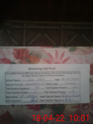 | Certified that this School was Inspected by the Undersigned MEA/DMO Today and the Information Stated Above is as Per Record. | |||||