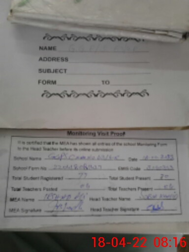 | Attendance Register | Head Teacher | MEA with School | Visit Proof |