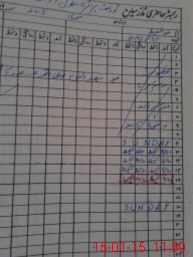 | CNIC | Full Name | Designation | R/C | Absence During Last Calender Month |