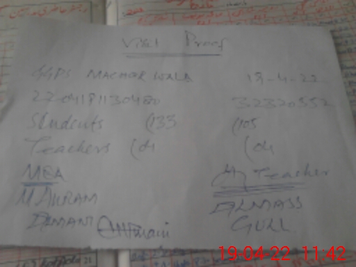 | EMIS Code: 32320552 | Name of School: GGPS MACHAR WALA | |||