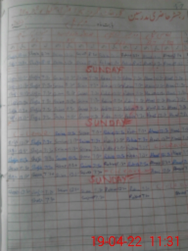 | CNIC | Full Name | Designation | R/C | Absence During Last Calender Month |