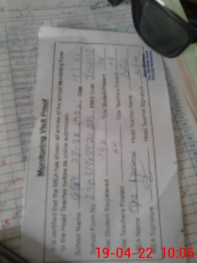 | Certified that this School was Inspected by the Undersigned MEA/DMO Today and the Information Stated Above is as Per Record. | |||||