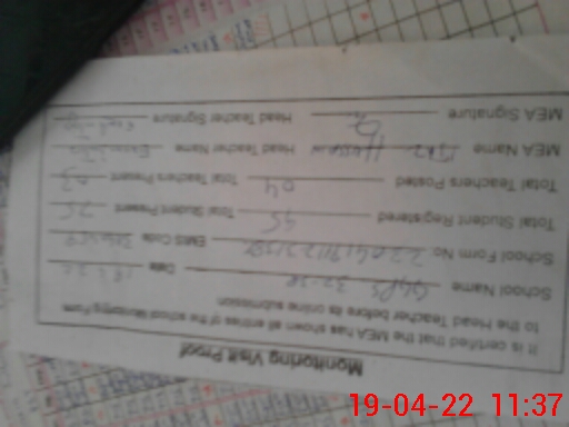 | Certified that this School was Inspected by the Undersigned MEA/DMO Today and the Information Stated Above is as Per Record. | |||||