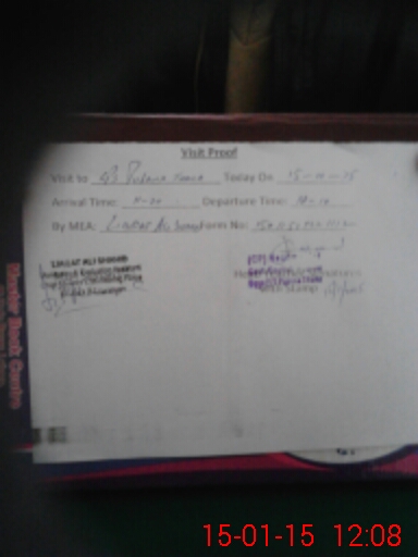 | Monitoring Date: 15-01-2015 | Start Time: 15-01-2015 11:22 AM | End Time: 15-01-2015 12:08 PM | Name of MEA: Li**** Al**** Sh**** (R**** | |