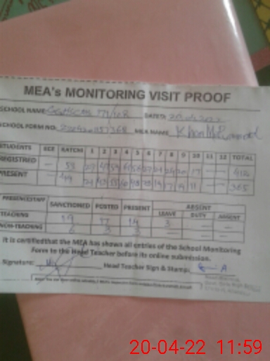 | Attendance Register | Head Teacher | MEA with School | Visit Proof |