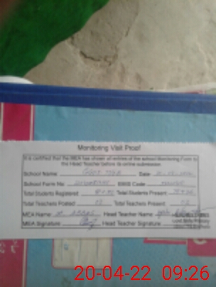 | Attendance Register | Head Teacher | MEA with School | Visit Proof |