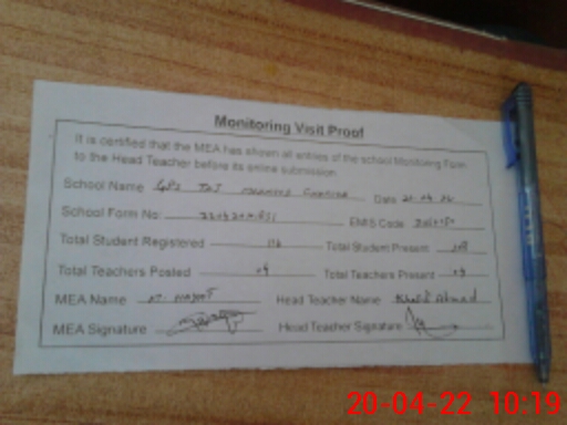| EMIS Code: 31150150 | Name of School: GPS TAJ MEHMOOD CHAKUKA | |||