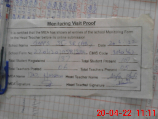 | EMIS Code: 31140462 | Name of School: GMPS CHAK NO 35/3-R AB | |||
