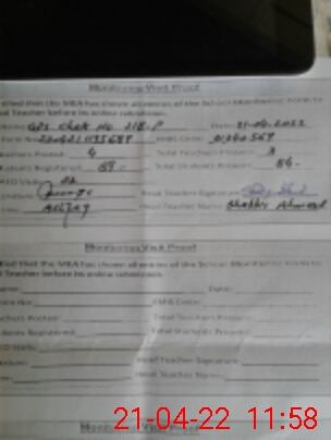 | Attendance Register | Head Teacher | MEA with School | Visit Proof |