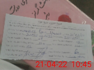 | Name: TA**** BI**** Designation: (School Headmaster's/Headmistress's) E.S.T.(G) Phone/Cell Number: 03**** |