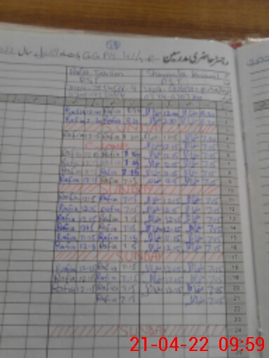 | CNIC | Full Name | Designation | R/C | Absence During Last Calender Month |