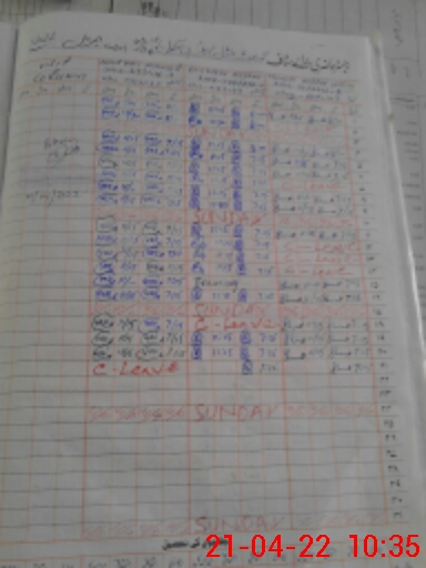 | CNIC | Full Name | Designation | R/C | Absence During Last Calender Month |