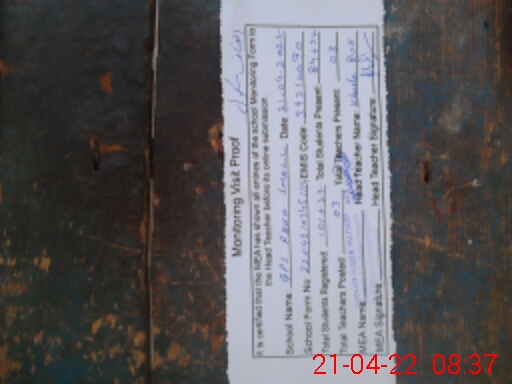| Attendance Register | Head Teacher | MEA with School | Visit Proof |