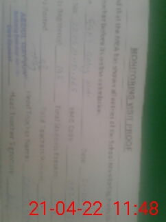 | Monitoring Date: 21-04-2022 | Start Time: 21-04-2022 11:32 AM | End Time: 21-04-2022 11:53 AM | Name of MEA: HA**** AB**** QA**** | |
