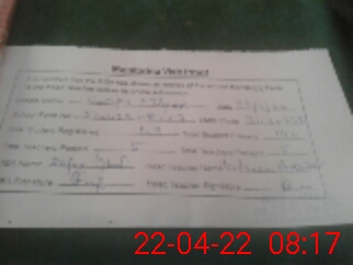| Attendance Register | Head Teacher | MEA with School | Visit Proof |