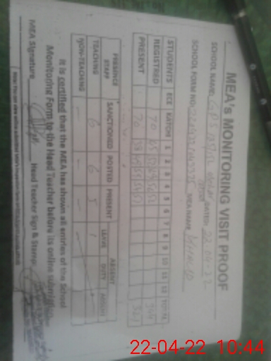 | Attendance Register | Head Teacher | MEA with School | Visit Proof |