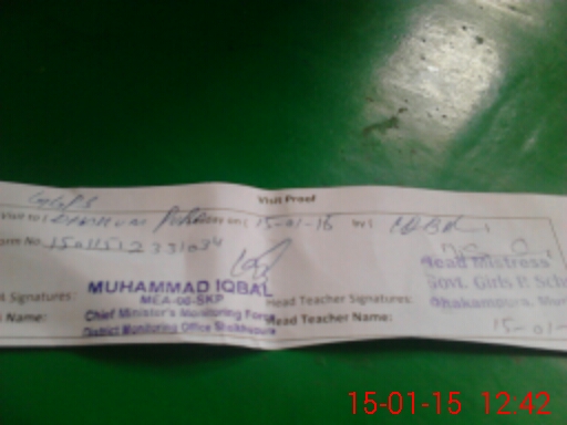 | District: SHEIKHUPURA | Tehsil: MURIDKE | Markaz: MURIDKE-FEMALE | Level: Middle | |