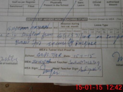 | Attendance Register | Head Teacher | MEA with School | Visit Proof |