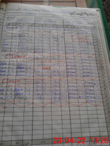 | CNIC | Full Name | Designation | R/C | Absence During Last Calender Month |