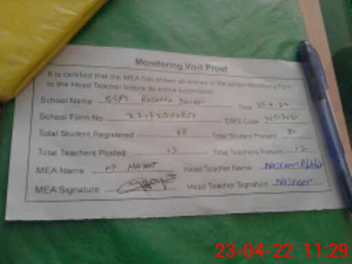 | Attendance Register | Head Teacher | MEA with School | Visit Proof |