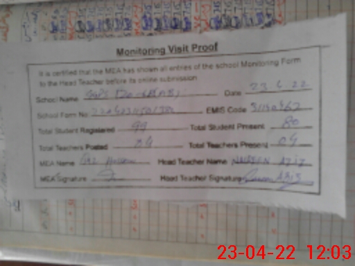 | Attendance Register | Head Teacher | MEA with School | Visit Proof |