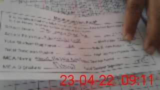 | Monitoring Date: 23-04-2022 | Start Time: 23-04-2022 08:52 AM | End Time: 23-04-2022 09:11 AM | Name of MEA: Ab**** Ra**** Am**** BN**** 28 | |