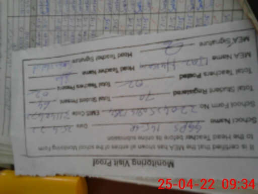 | Attendance Register | Head Teacher | MEA with School | Visit Proof |